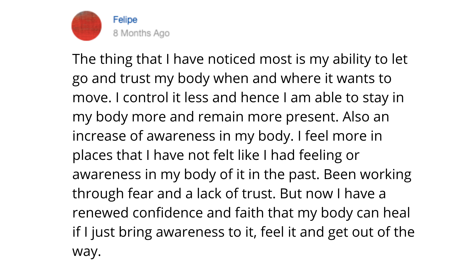 Felipe had been controlling his body out of fear and lack of trust.