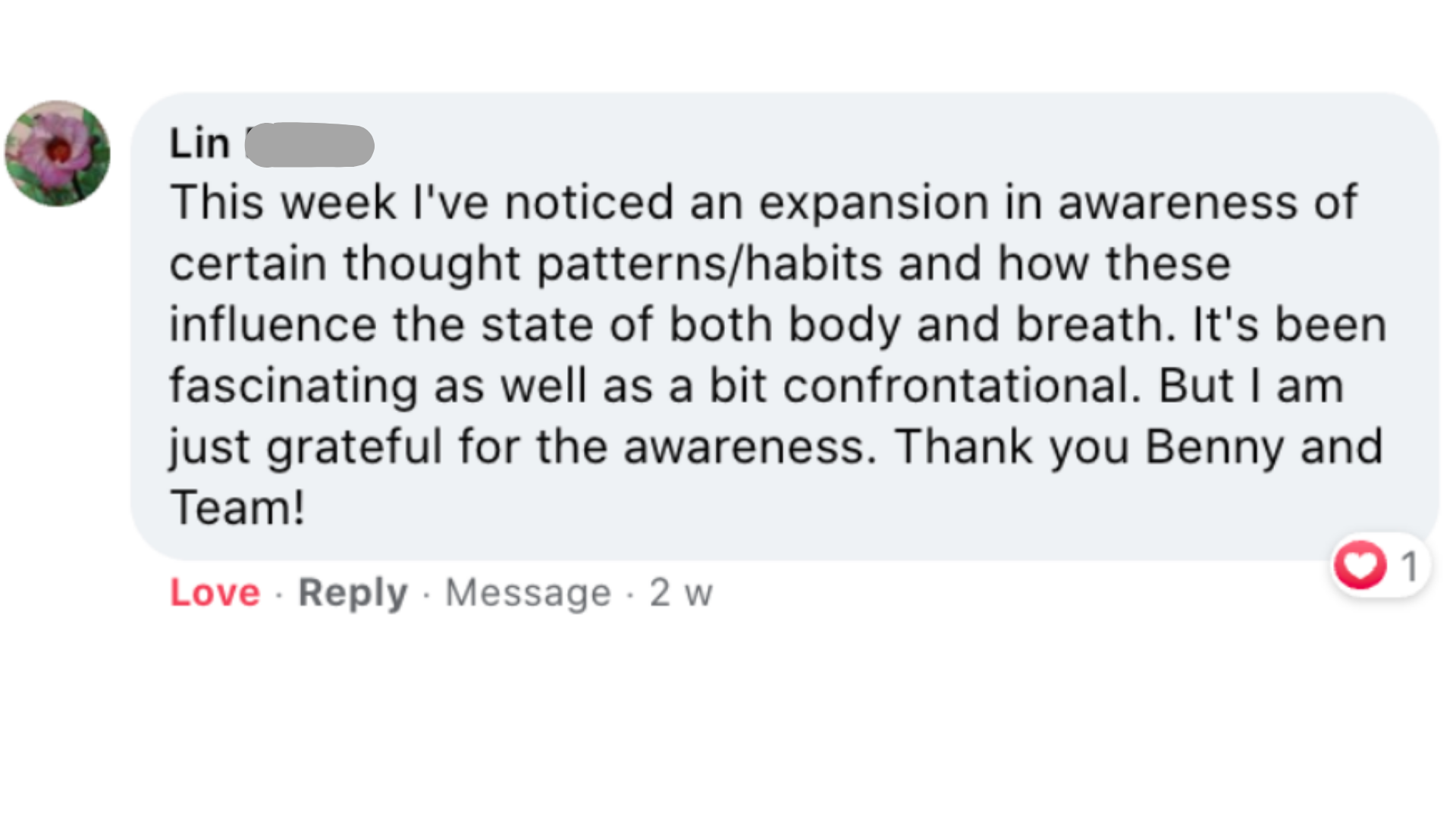 Lin was unconsciously repeating thought and habit patterns that shaped her body and breath.