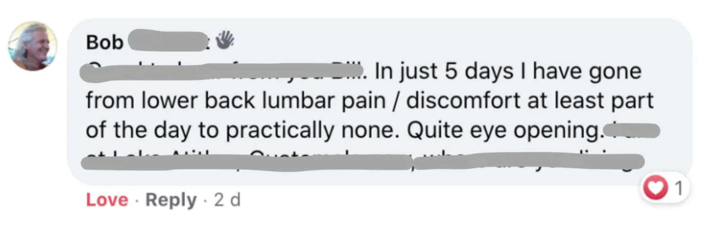 Bob lived with constant lower back discomfort.