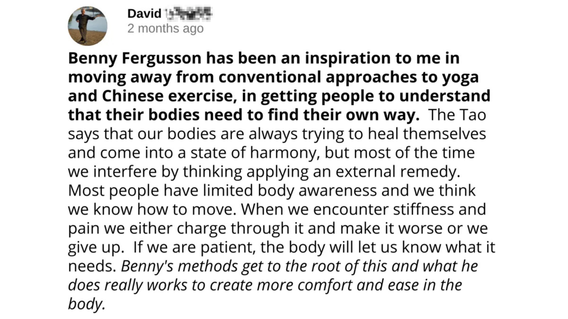 As a Chinese Medicine (TCM) Practitioner, David had seen how people override their bodies with techniques and external fixes.