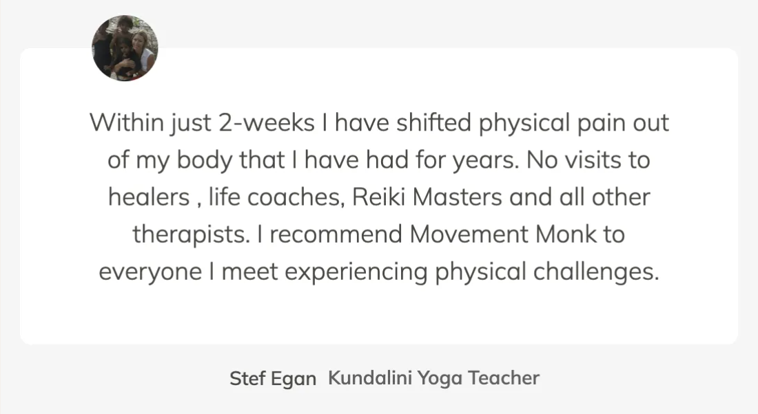 ...have used Movement Monk programs to reconnect to their body, build lasting strength, and unlock healing others told them wasn’t possible. From chronic pain, to fibromyalgia, to nervous system burnout, they didn’t just find relief—they found themselves.
